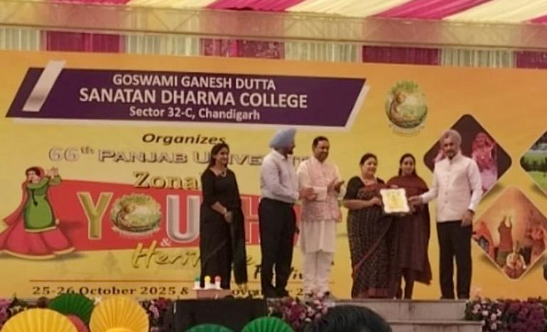 Prof. Anita Kaushal , Principal was felicitated by Mr. Rubinderjit Singh Brar, IAS , Director Higher Education, Chandigarh Administration, during the 66th Panjab University Zonal Youth and Heritage Festival held from 25–26 October and 1–2 November 2025 at GGDSD College, Sector 32, Chandigarh