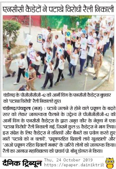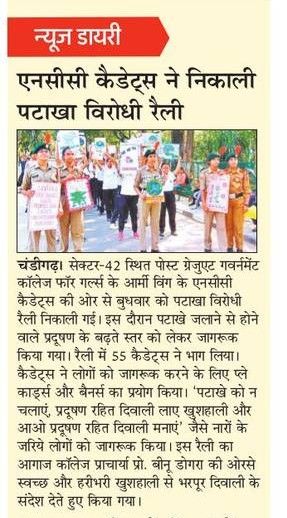 Rally on “Cracker Free Diwali” by NCC Cadets on 23 Oct 2019