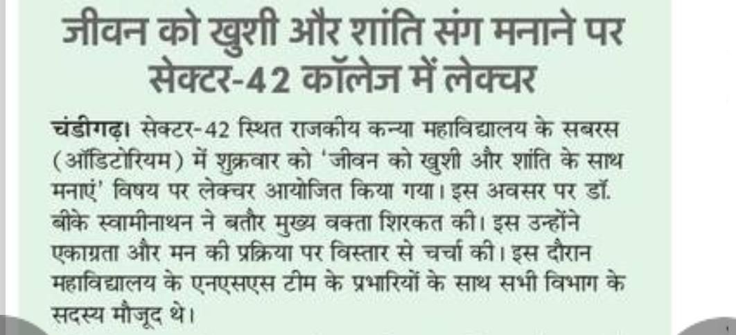 Motivational Lecture by Dr. B.K.Swaminathan on “Celebrating Life with Happiness and Peace”