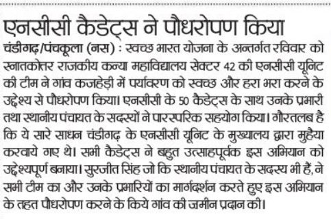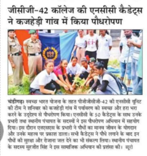 Tree Plantation Drive by the students of NCC at Village Kajheri 2019
