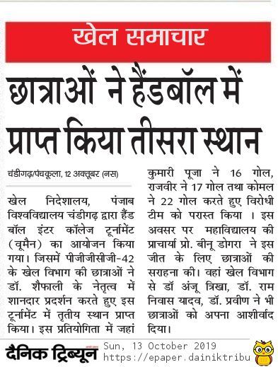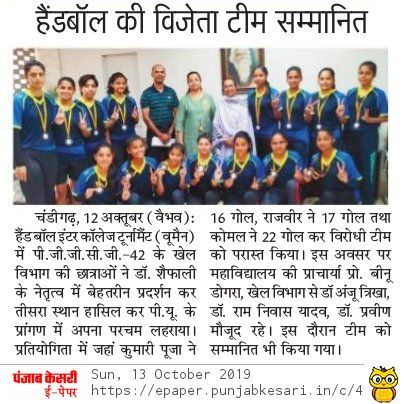 Handball Tournament Inter-college Bagged Third Prize 2019