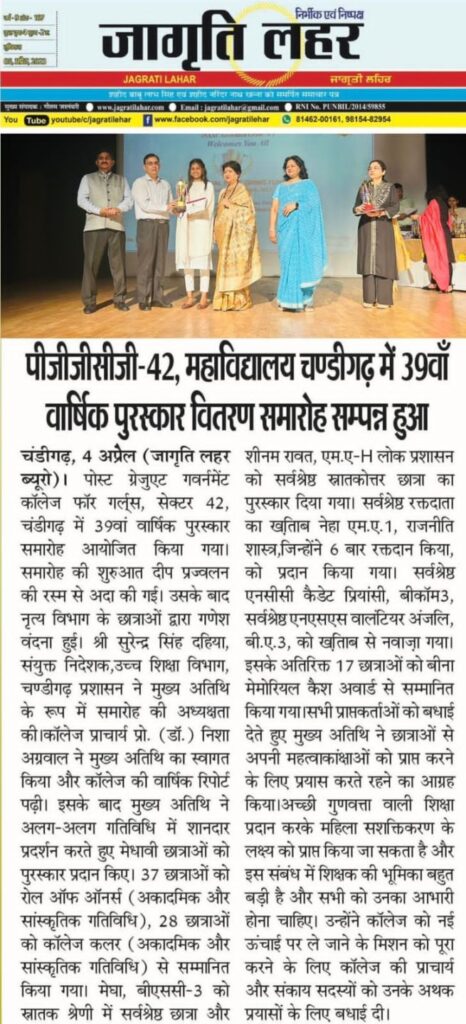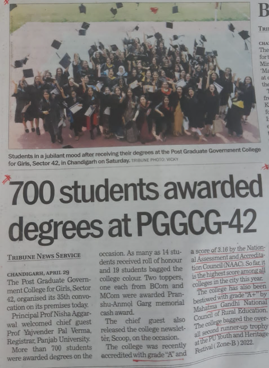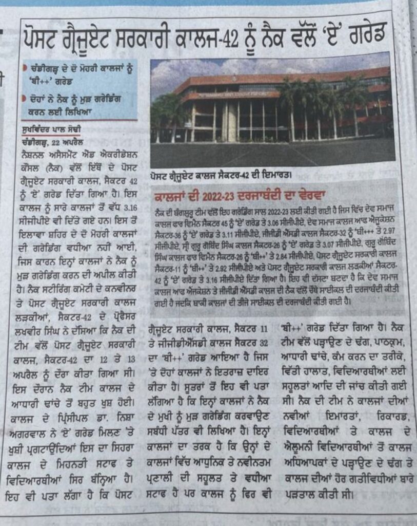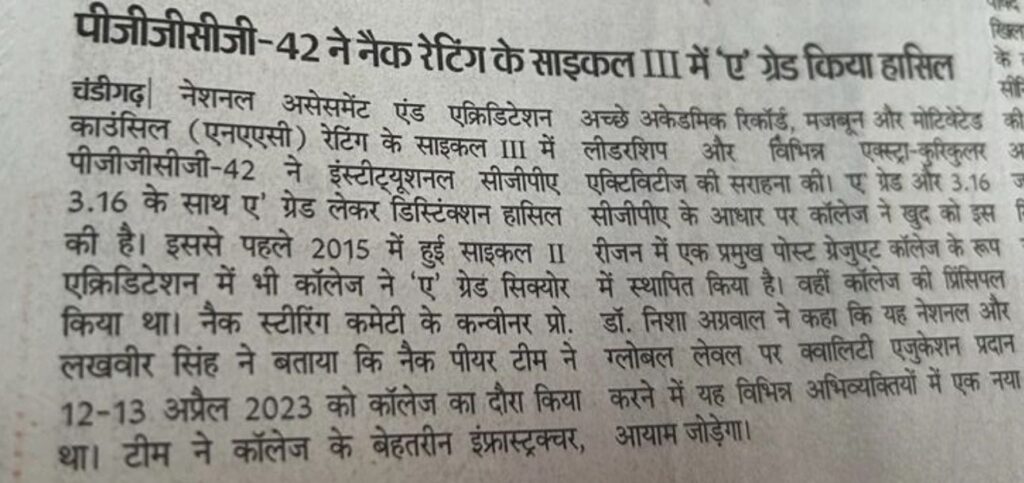 PGGCG-42 got ‘A’ Grade by NAAC IN Cycle 3