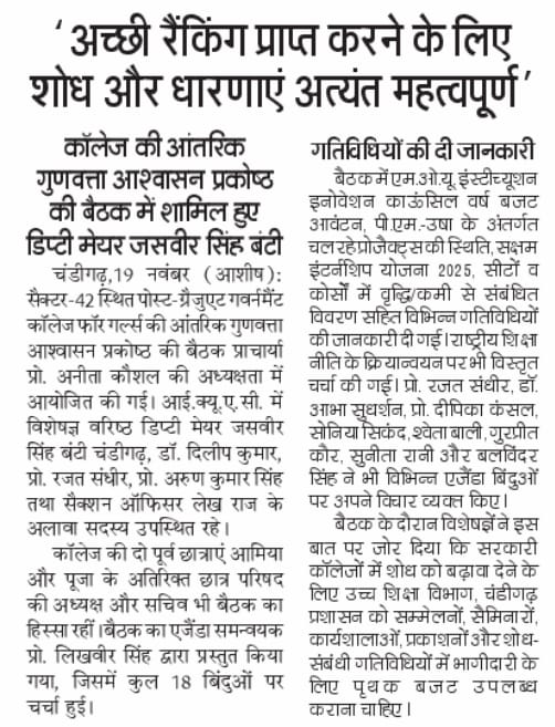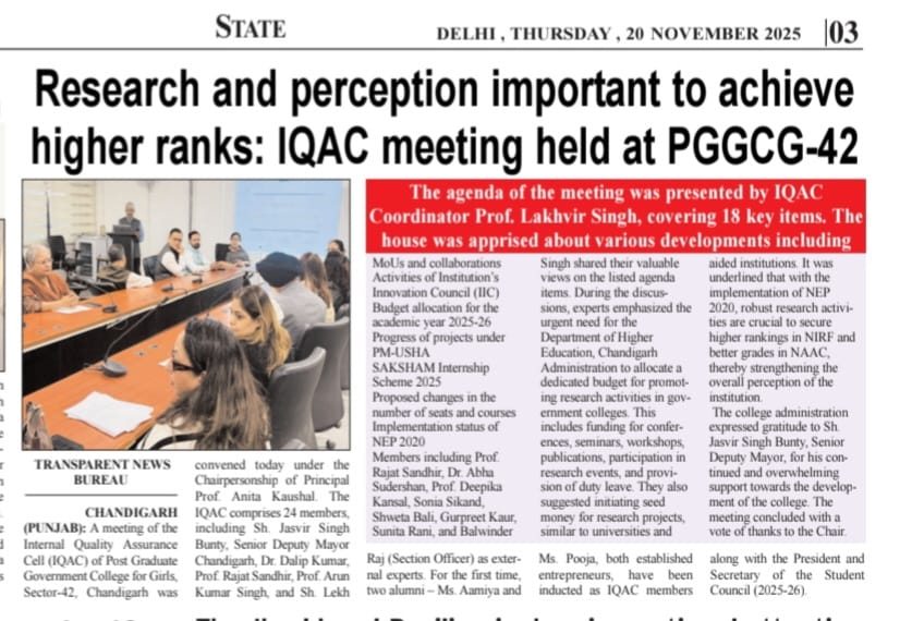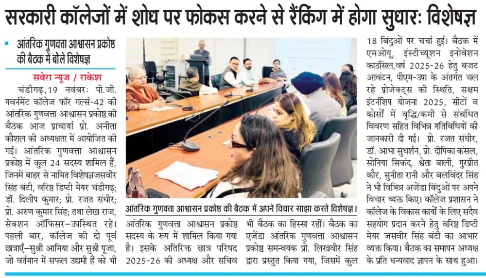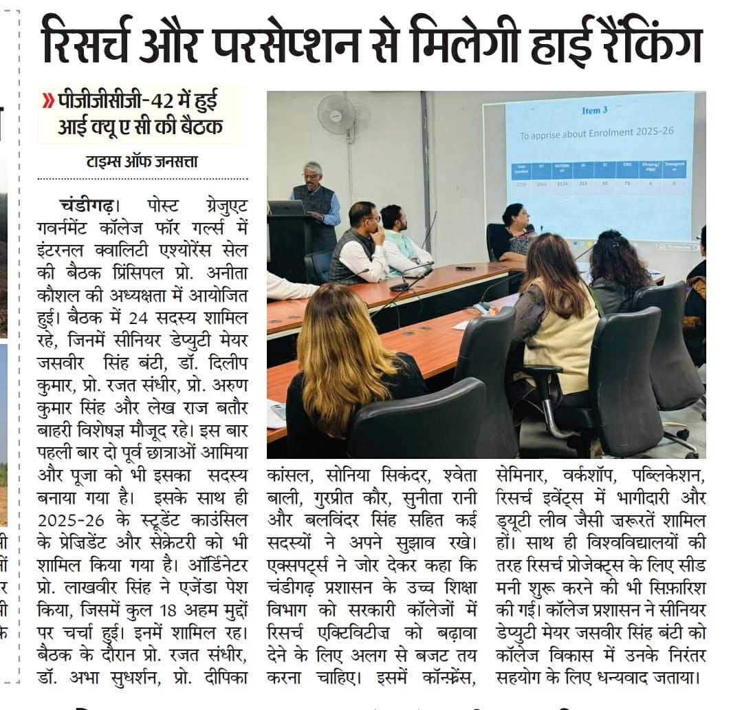 PGGCG-42 conducts IQAC meeting focused on strengthening research and academic excellence