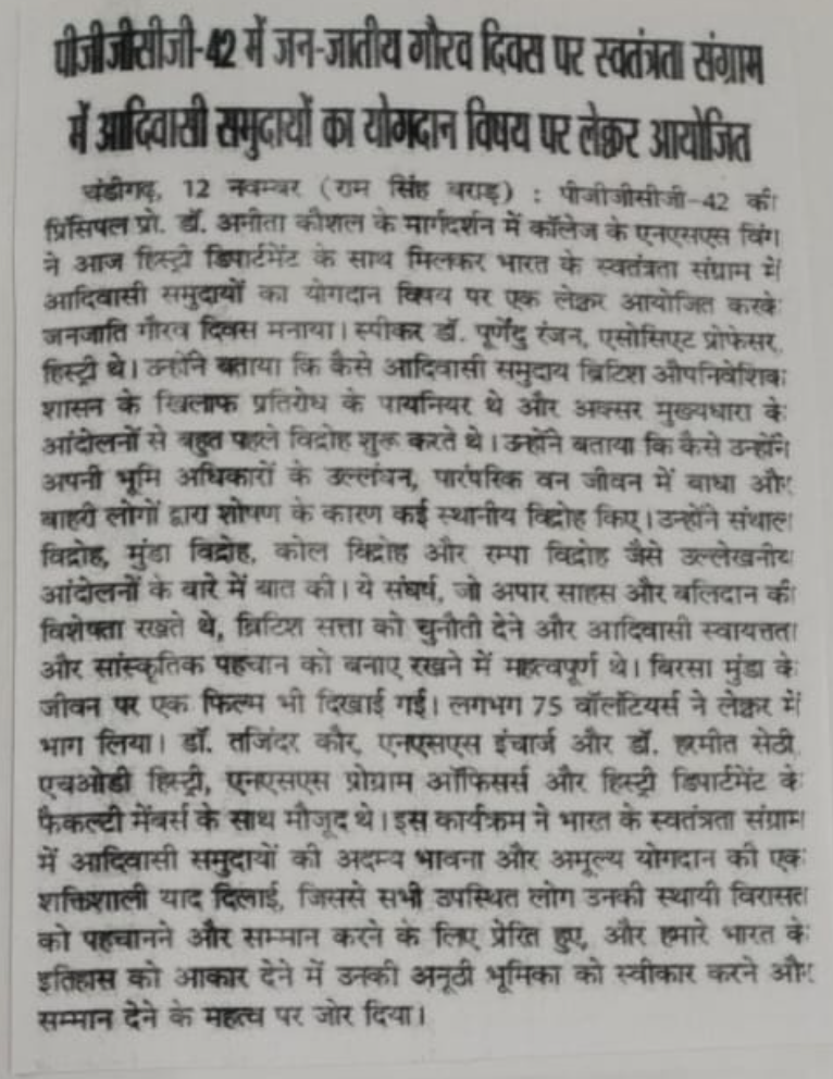Celebration of Janajatiya Gaurav Diwas on 12th nov 2025
