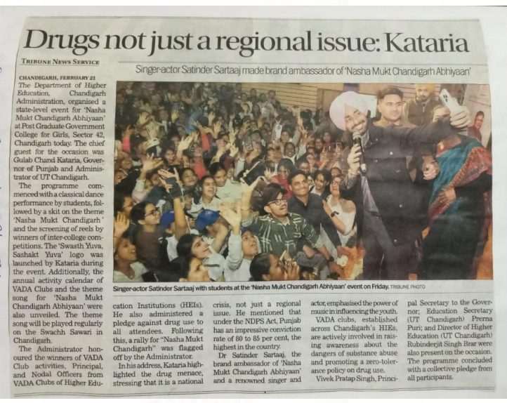 PG GCG-42,Chd, under the auspices of the Department of Higher Education, Chandigarh Administration, organized a function on “Nasha Mukt Chandigarh Abhiyaan (NBCA)” on 21 February 2025