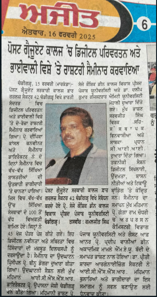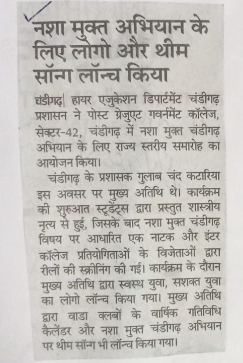 PG GCG-42,Chd, under the auspices of the Department of Higher Education, Chandigarh Administration, organized a function on “Nasha Mukt Chandigarh Abhiyaan (NBCA)” on 21 February 2025