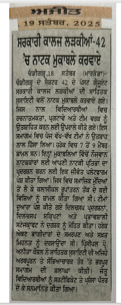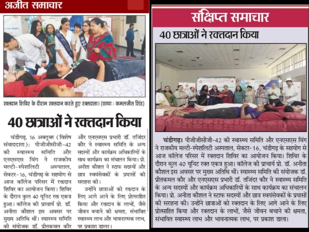 PGGCG-42, ChD, in collaboration with Government Multi-Specialty Hospital, Sector-16, Chandigarh, organized a Blood Donation Camp on campus on 15.10.2025