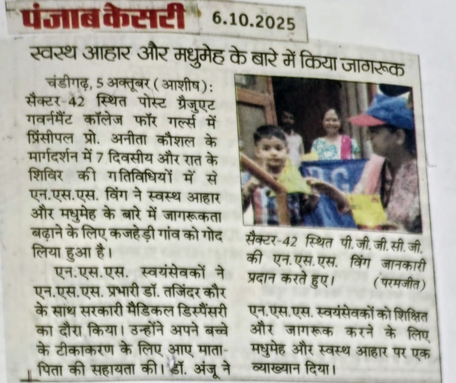 एन.एस.एस. विंग द्वारा जेजेड़ी गाँव में मधुमेह और स्वस्थ आहार के प्रति जागरूकता अभियान का आयोजन on 05 Oct 2025