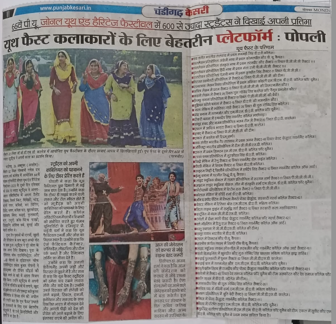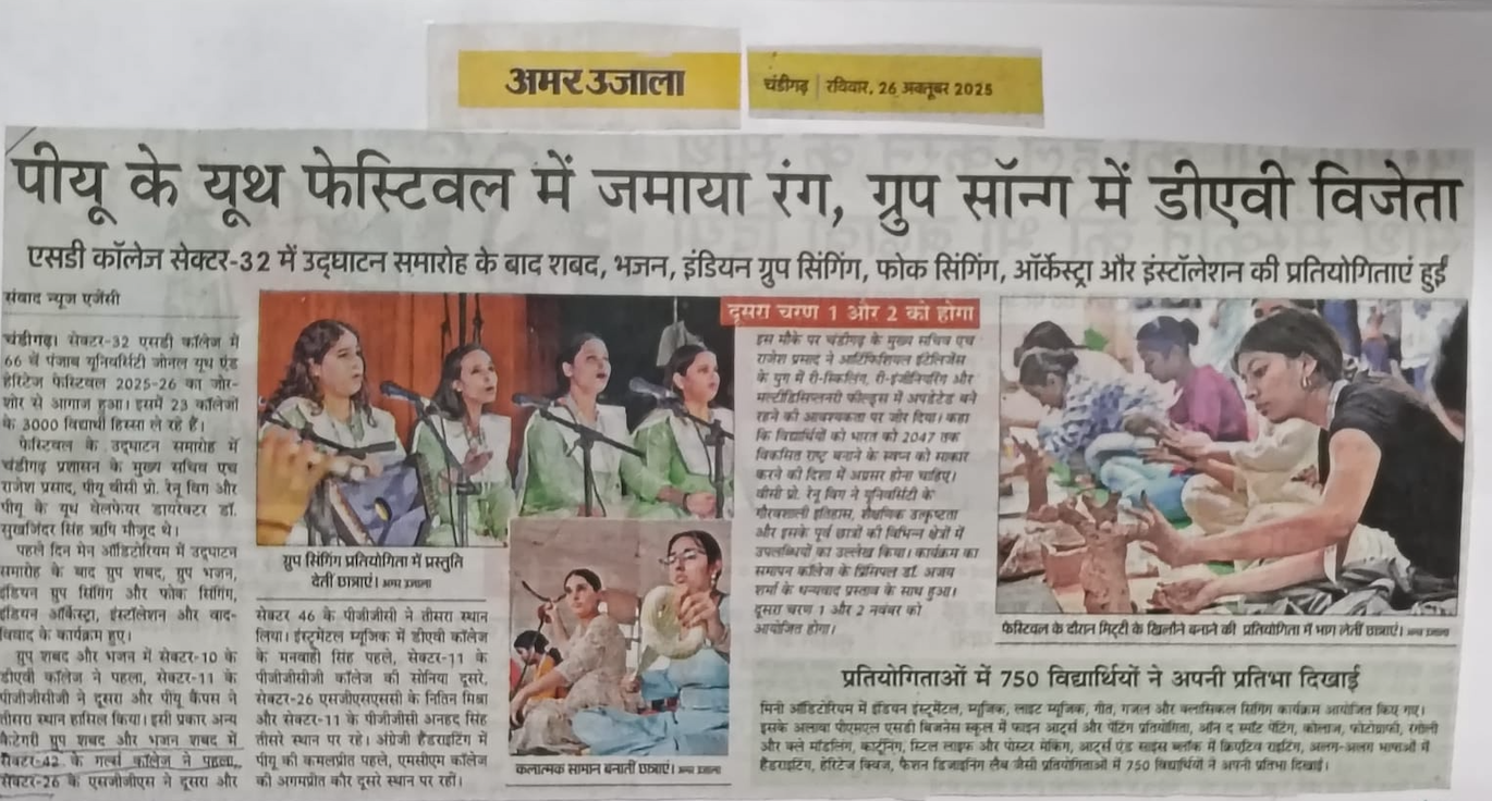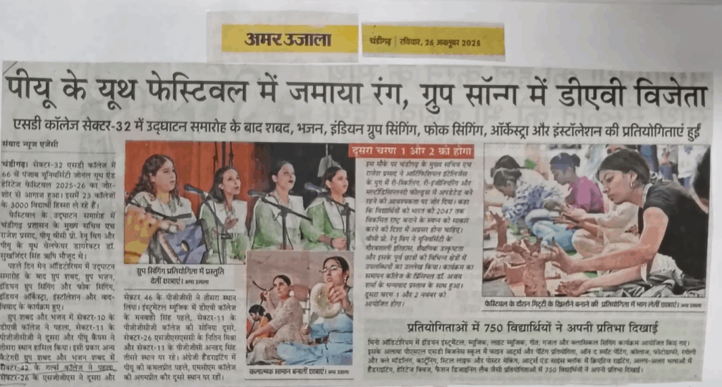 Glimpses from the 66th Panjab University Zonal Youth & Heritage Festival held at GGDSD College, Sector 32, Chandigarh (25–26 Oct & 1–2 Nov 2025)