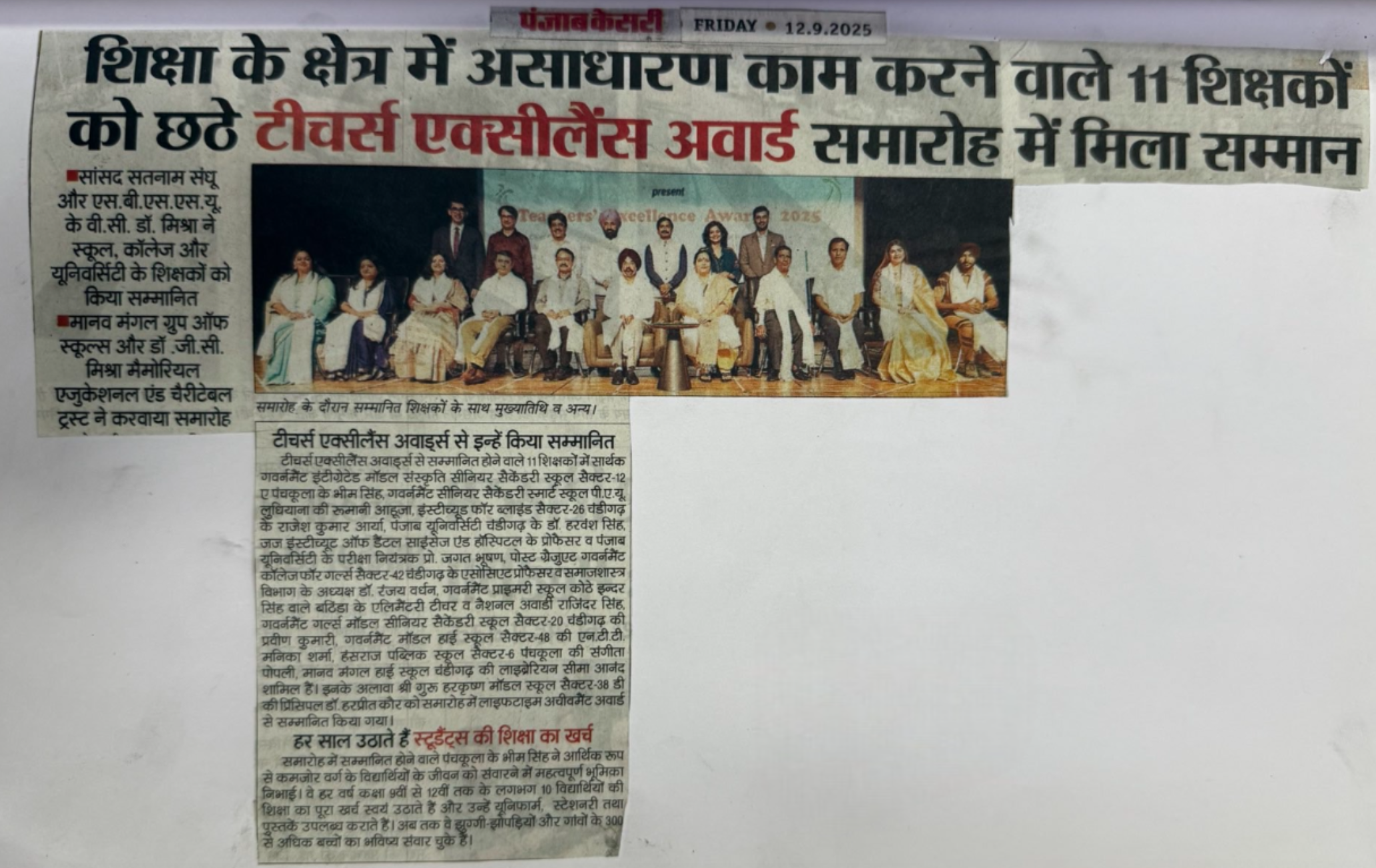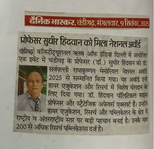 Professor Sudhir Hindwan Honored with National Award for Outstanding Contribution to Education and Research on 5 Sep 2025