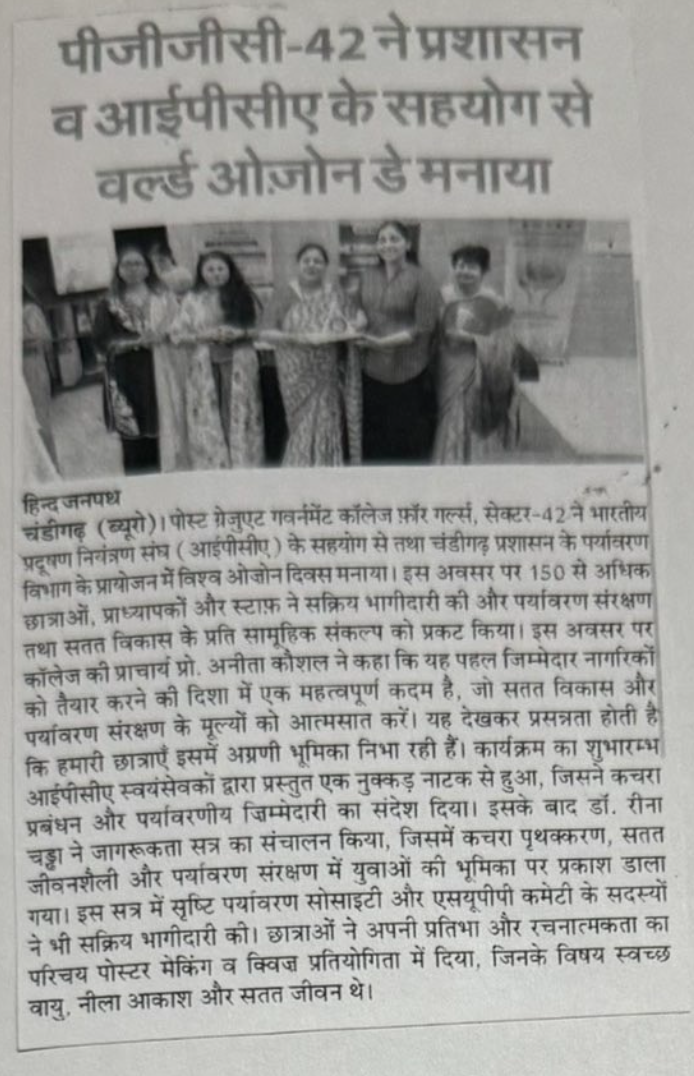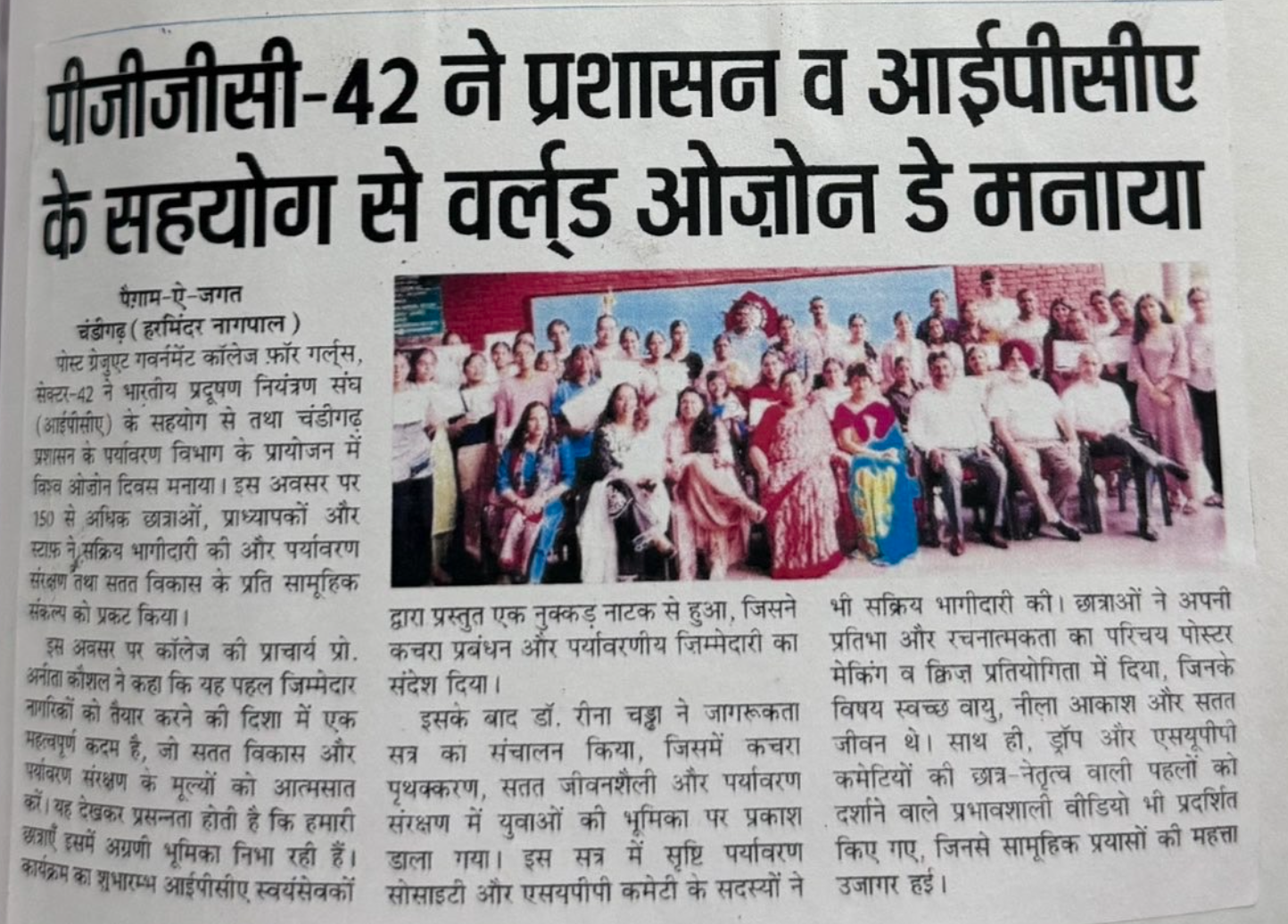 PGGCG-42 celebrated World Ozone Day in collaboration with Chandigarh Administration and IPCA on 16 Sep 2025
