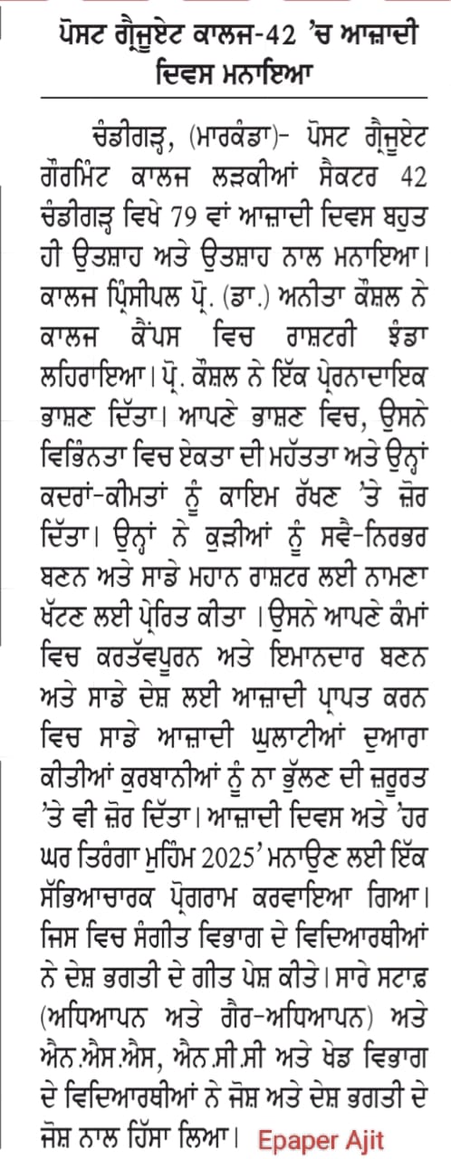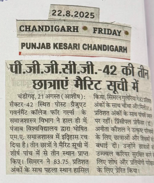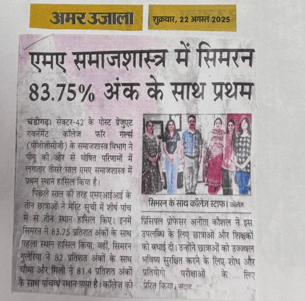 Department of Sociology, PGGCG-42, creates history with First Position in M.A. Sociology for the third consecutive year at Panjab University, Examination 2025