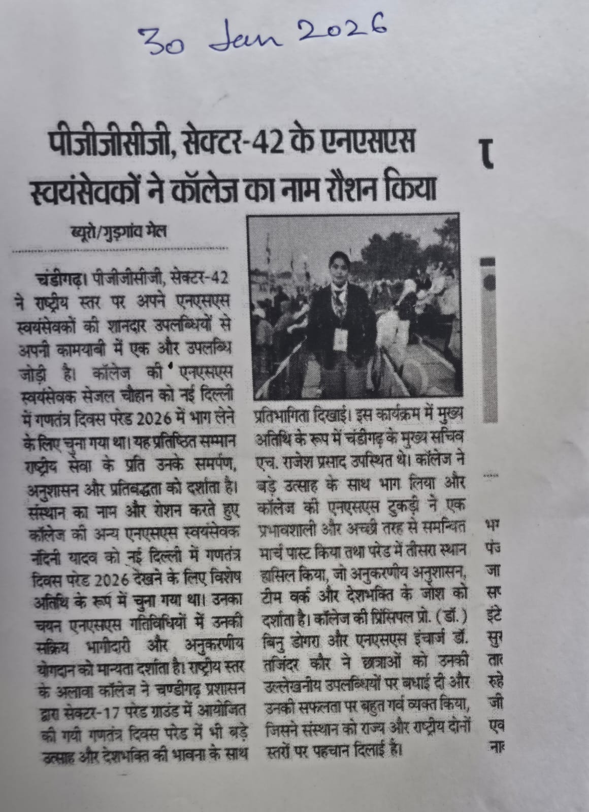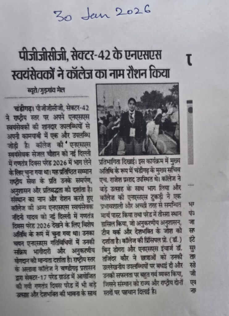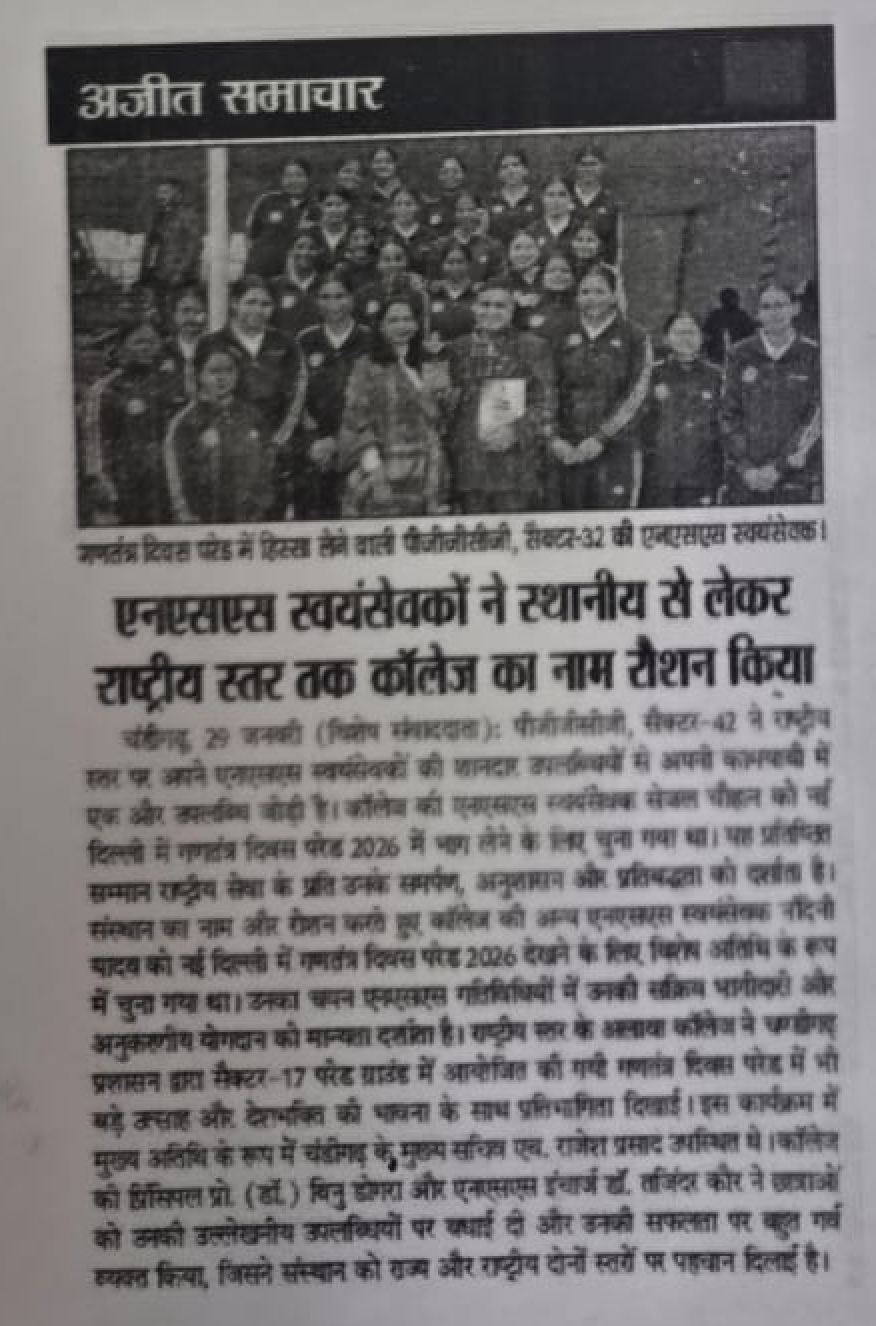 NSS volunteers of PG GCG-42, Chandigarh bring laurels to the college through distinguished participation at the National level on Republic Day 2026