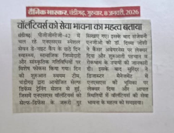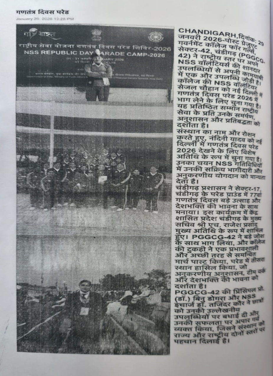 NSS volunteers of PG GCG-42, Chandigarh proudly participate in the Republic Day Parade –2026, New Delhi