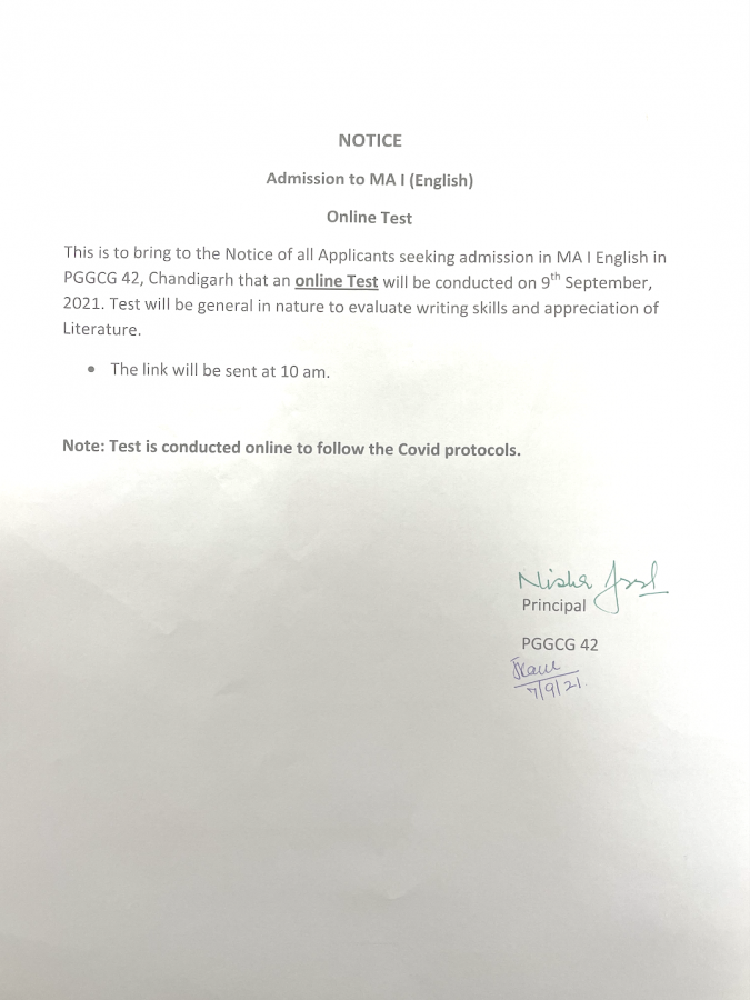 शिक्षा मन्त्रालय भारत सरकार के तत्वाधान में “आज़ादी का अमृत महोत्सव” भारत@75 के परिप्रेक्ष्य में स्नातकोत्तर राजकीय कन्या महाविद्यालय सेक्टर-42, चण्डीगढ़ के हिन्दी विभाग द्वारा 7 सितम्बर से 14 सितम्बर 2021 तक “हिन्दी पखवाड़ा” Date: 07 Sep 2021