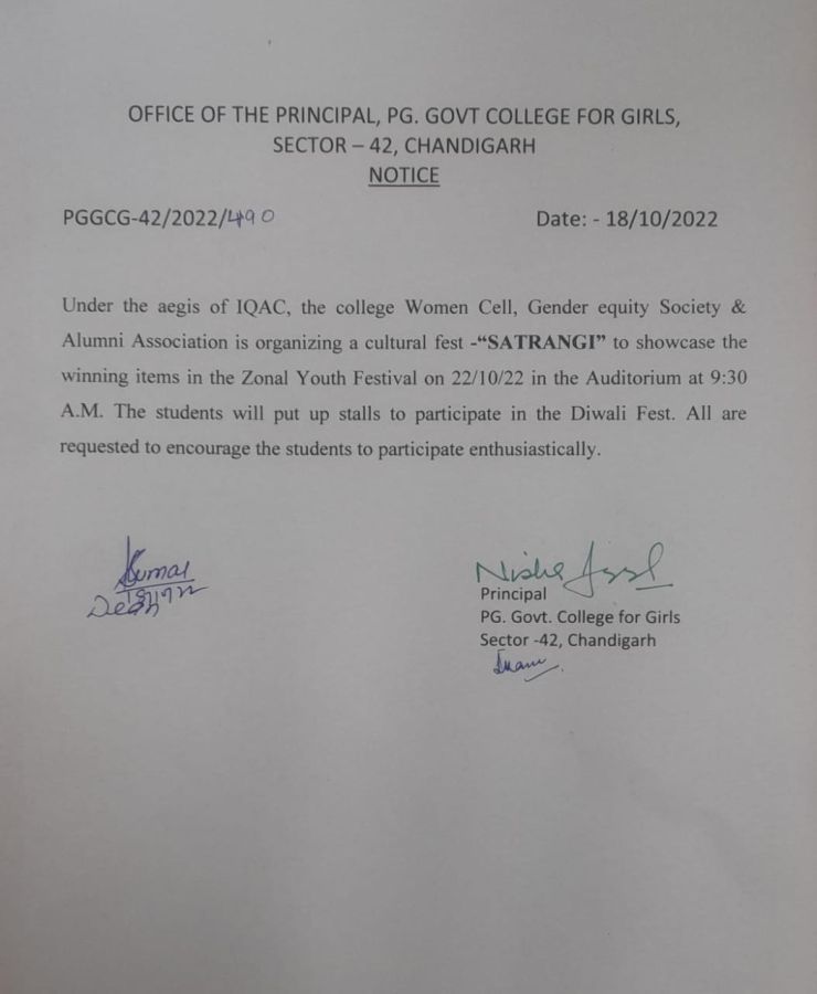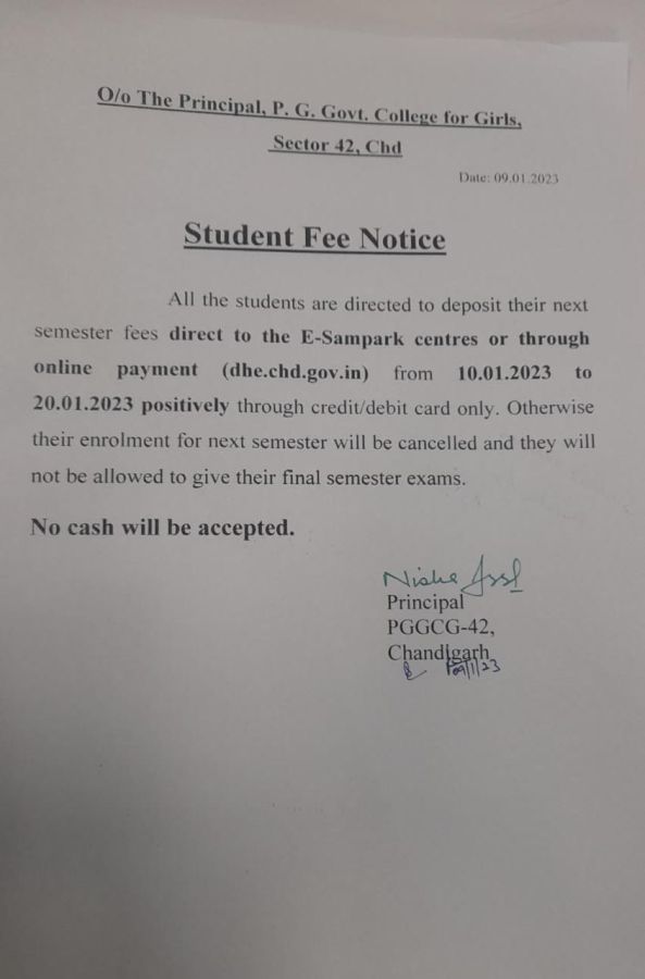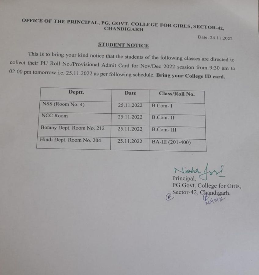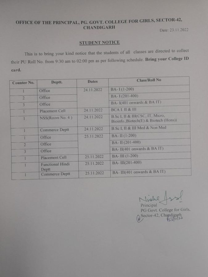 Students of all the classes are directed to collect their Panjab University Roll No Date: 23 Nov 2022