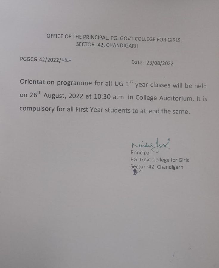 Orientation Programme for All 1st Year Classes – 26 August 2022 -College Auditorium , 10: 30 A.M. Date: 23 Aug 2022