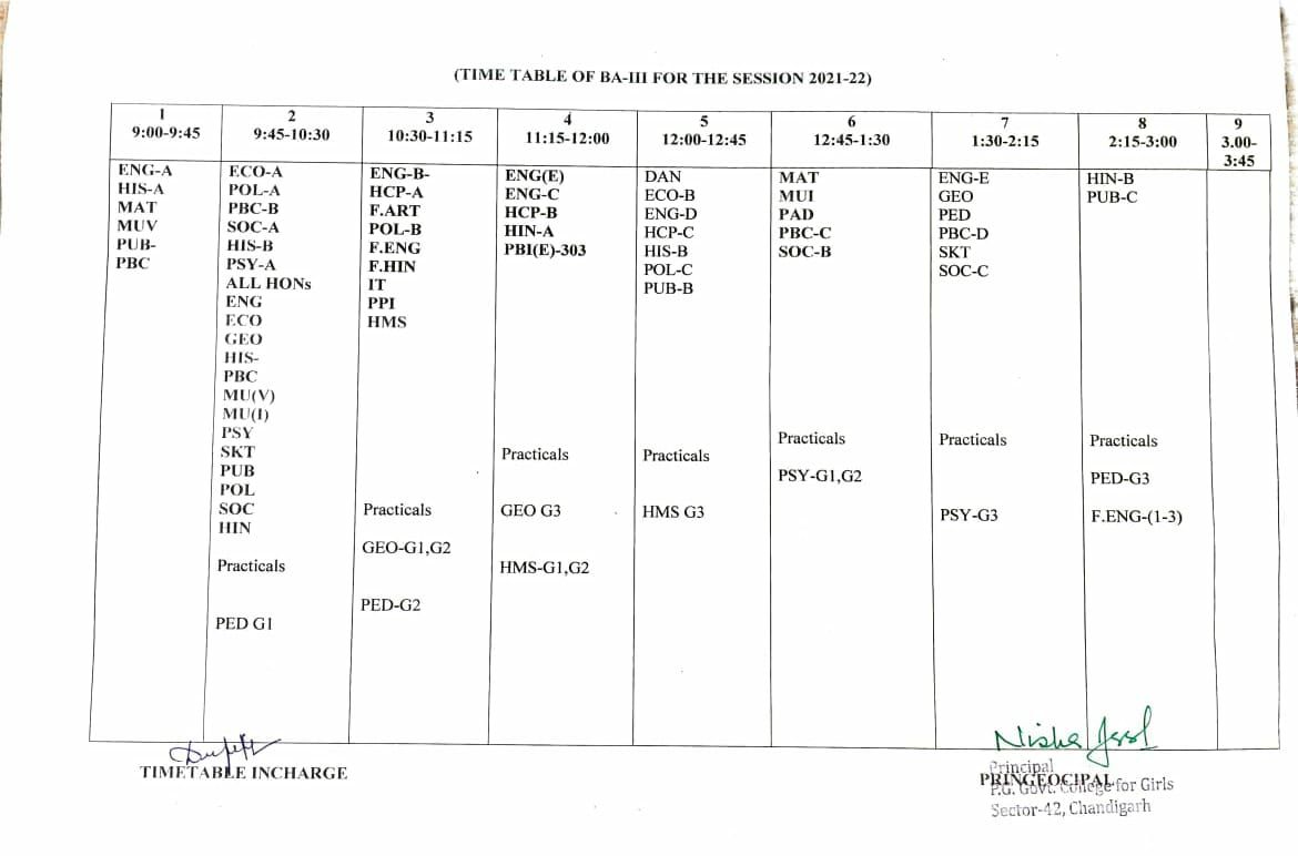 Time Table BA - III Classes Odd Semester 2021-2022